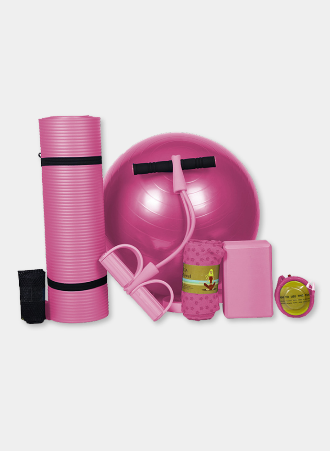Introducing our exclusive 5-Piece Beginner Yoga Mat Set, meticulously designed to elevate your yoga practice from the ground up.